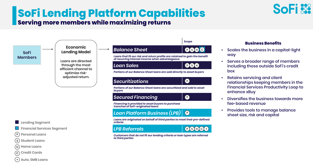 SOFI is also becoming more smart, efficient, and people-focused on innovation. This comes from its core, their economic lending model, which ensures every loan is channeled through the most effective strategy to balance risk/maximize returns. It’s not a one-size-fits-all approach—far from it. Some loans are kept on their balance sheet because they’re a perfect fit, providing steady, recurring interest income. Others are sold directly to buyers, creating liquidity and freeing up resources. Then there’s securitization, where loans are bundled and sold to spread out risk and boost revenue. They’ve even got secured financing, where SOFI helps buyers fund their purchases of these loans, making it a win-win for everyone.